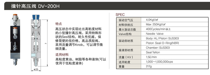 產(chǎn)品簡介:撞針高壓閥 DV-200H