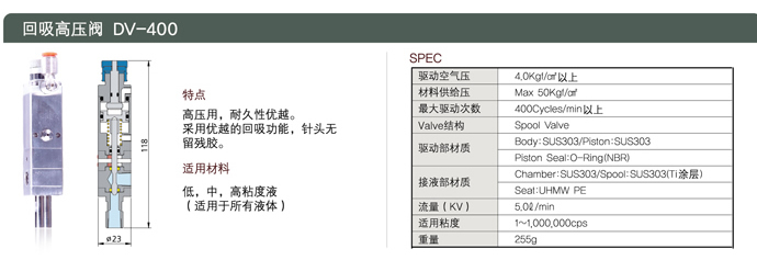 • 產(chǎn)品名稱:回吸高壓閥 DV-400