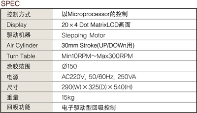 ■ 適用于圓形作業(yè)的設(shè)備,把產(chǎn)品放置在Turm Table上旋轉(zhuǎn)后使流體定量吐出的裝置 ■ 通過一次的輸入信號(hào),實(shí)現(xiàn)啟動(dòng),上下,旋轉(zhuǎn),移動(dòng),停止等運(yùn)作的自動(dòng)控制,可以很好的實(shí)現(xiàn)圓形點(diǎn)膠作業(yè) ■ 控制功能是由液體控制功能和Know-How技術(shù)的結(jié)合,構(gòu)思出多種產(chǎn)品的簡便及最適的點(diǎn)膠作業(yè) ■ 具有回吸功能,防止點(diǎn)膠后的留殘膠 ■ 具有計(jì)數(shù)功能,便于生產(chǎn)管理 ■ 上下驅(qū)動(dòng)部采用微調(diào)功能,可以實(shí)現(xiàn)微細(xì)的調(diào)整 ![]() |