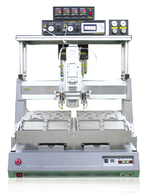 ■ 采用多頭治具,提高單位時(shí)間內(nèi)的生產(chǎn)量。與點(diǎn)膠機(jī),配件組合使用時(shí),可以滿足點(diǎn),線,3次元點(diǎn)膠作業(yè)等 |