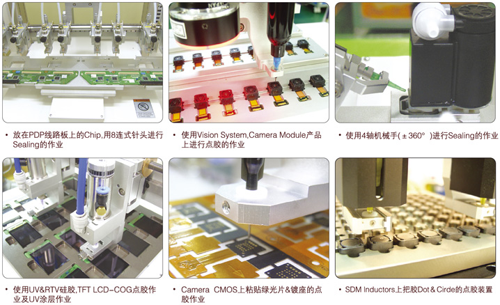■ PDP和LCD線路板上,自動(dòng)定量點(diǎn)出硅膠的裝備