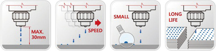 · 因是噴射型吐膠方式所以不會(huì)對(duì)針頭和產(chǎn)品的距離所影響。(Max.30mm) · 非接觸,高速作業(yè),所以大幅度減少涂布時(shí)間。 · 非接觸的方式,所以不會(huì)對(duì)產(chǎn)品有損害,也不會(huì)受到產(chǎn)品的平整度束縛。 · 微量吐膠方式,所以精密吐膠性能很優(yōu)越。(±2%以下) · 結(jié)構(gòu)特殊具有優(yōu)良的耐久性。 · 結(jié)構(gòu)簡(jiǎn)單,維護(hù)方便。 |